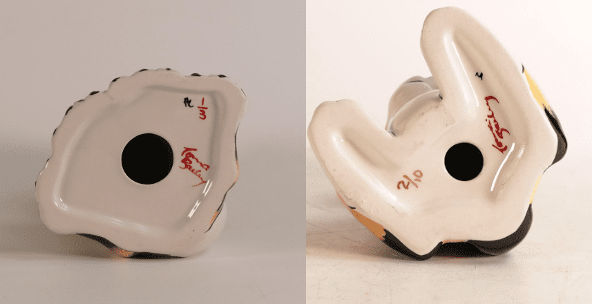 Lorna Bailey model of the Rat Catcher, limited edition 1 of 3 and Gotya the Cat limited edition 2/10 for a 2007 open day – both signed in red