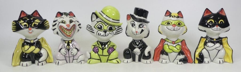 Lorna Bailey’s distinctive cat figurines represent a quirky, pop culture-inspired moment in contemporary British ceramics. These vibrant, Art Deco-style works have captured the attention of collectors worldwide, with values that continue to appreciate following Bailey’s retirement from pottery production in 2008.