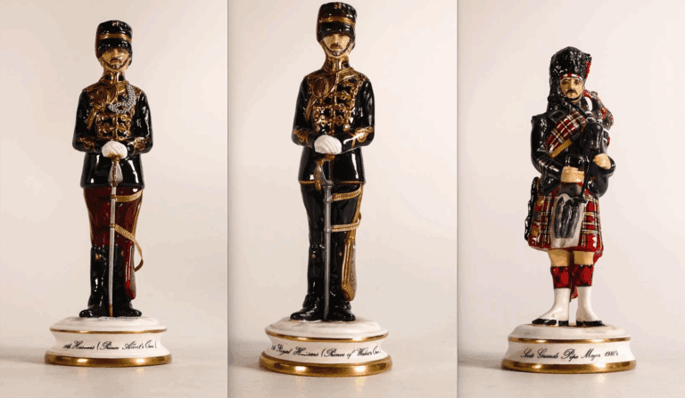 Michael Sutty (1937-2003) established himself as Britain’s foremost sculptor of military porcelain figures during his four-decade career. Working primarily from the 1960s until his death, Sutty developed techniques for creating bone china figures of exceptional complexity. Established Stoke-on-Trent manufacturers initially considered them impossible to produce commercially. Background and Technique Sutty was largely self-taught. He developed …