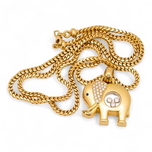 CHOPARD 18ct Gold elephant pendant set diamonds with an 18ct gold 50cm (approx.) neck chain, gross 37.30g. Sold for £3380 Our November Fine Art & Specialist Jewellery Sale 2025