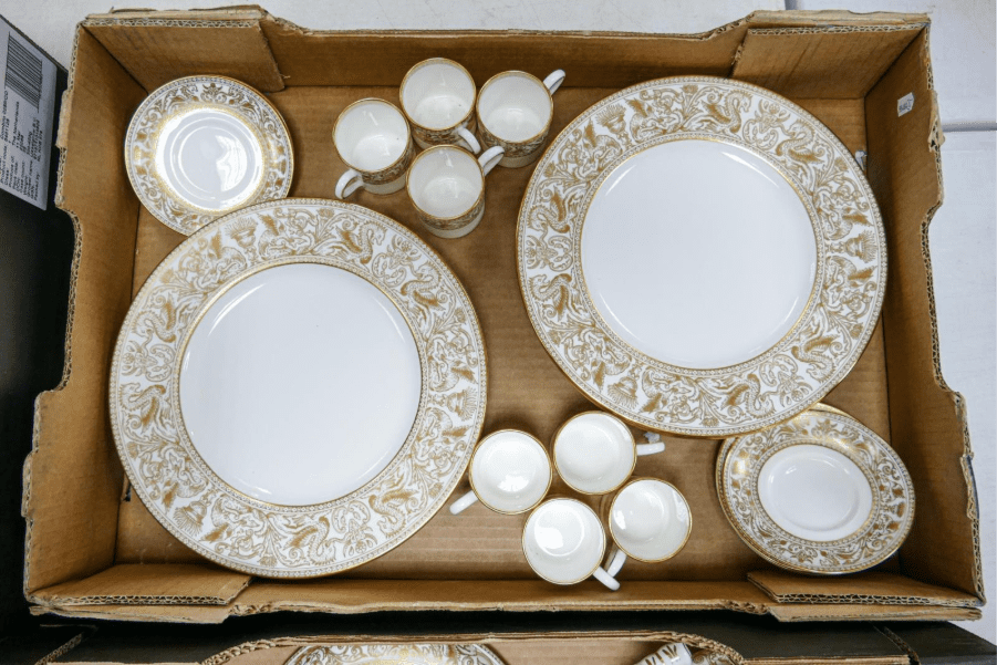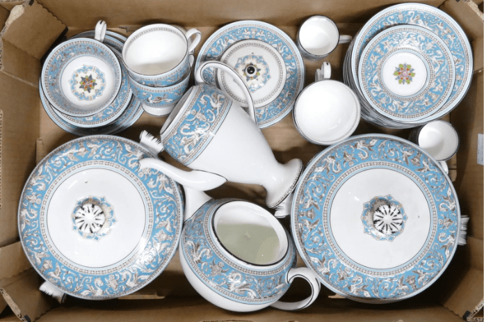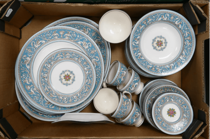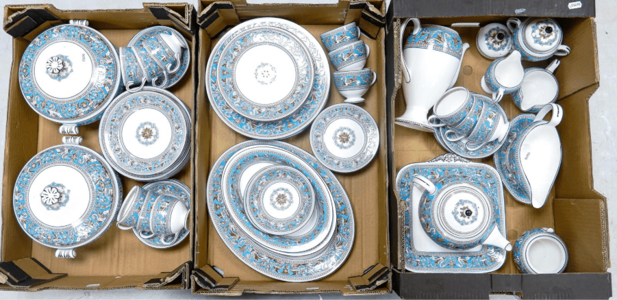 - A large collection of Wedgwood Florentine patterned dinner and tea ware (approx 48 pieces) sold for £450 at a March 2025 auction